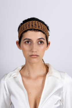 The Mühlbauer model Pearl is a hair band crocheted from a fine Japanese paper fiber in a grid-like pattern. It is tied at the back of the hairline. This style is just as suitable for chic, summery occasions as it is for traveling and the beach.