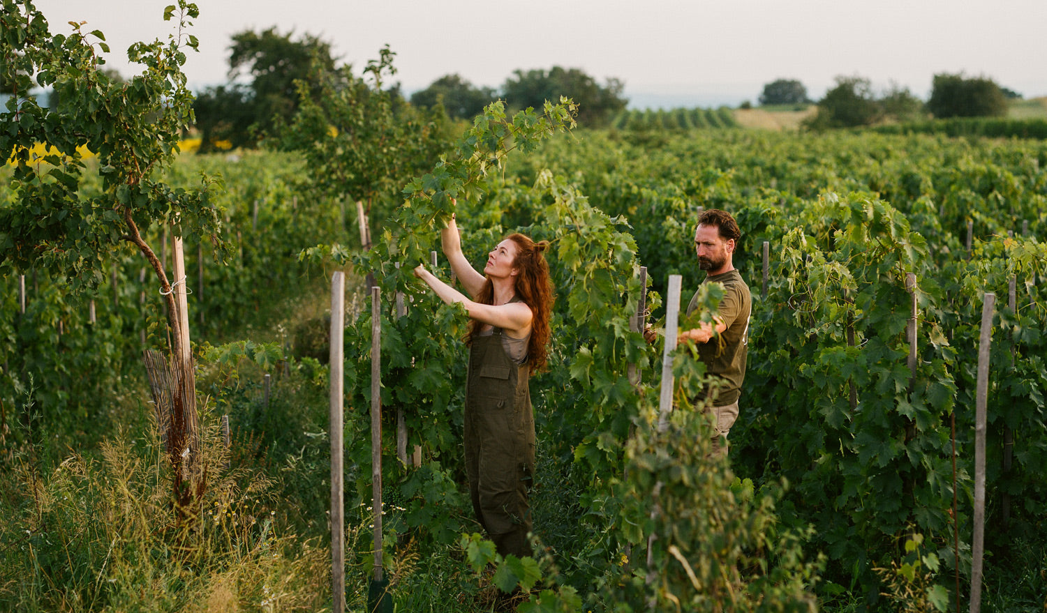 Stephanie, from a family of restaurateurs, learned photography, studied hospitality management in Lausanne, traveled the world. Eduard, from a winemaking family, learned the wine-making ropes, studied business administration. Our common dream was and is to create something lasting, to change the world, to be inspired and to inspire. We bought Gut Oggau back in 2007, with a lot of youthful enthusiasm, a pinch of naivety, a vision and an exciting, rocky, steep road ahead of us. We dared to take the plunge into the cold water of biodynamic cultivation, out of conviction, in order to close cycles and to maintain and increase the vitality of the vineyards. We saw natural wine as an opportunity to express our unique soils and our origins.