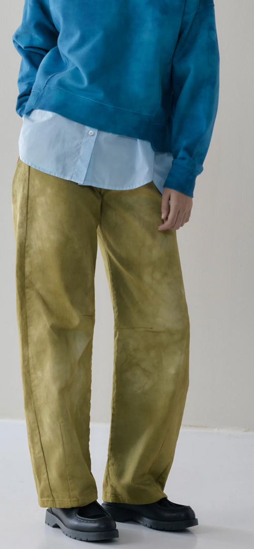 This pair of jeans is 100% unique and dyed by hand in Italy.